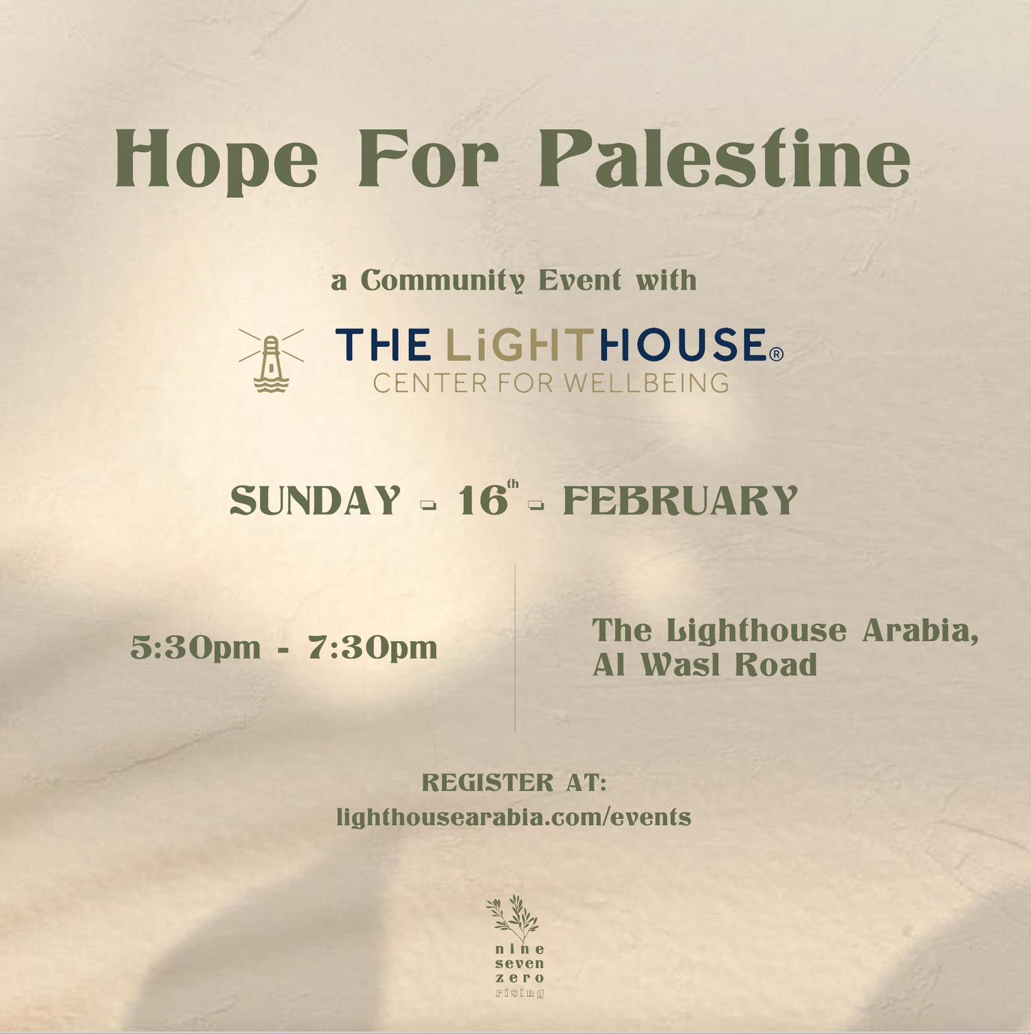 A community event by The Light House Arabia to come together to honour the pain, resilience, and unwavering spirit of the Palestinian people. This event will be a space to grieve the losses, hold each other in collective prayer, and find strength in community.