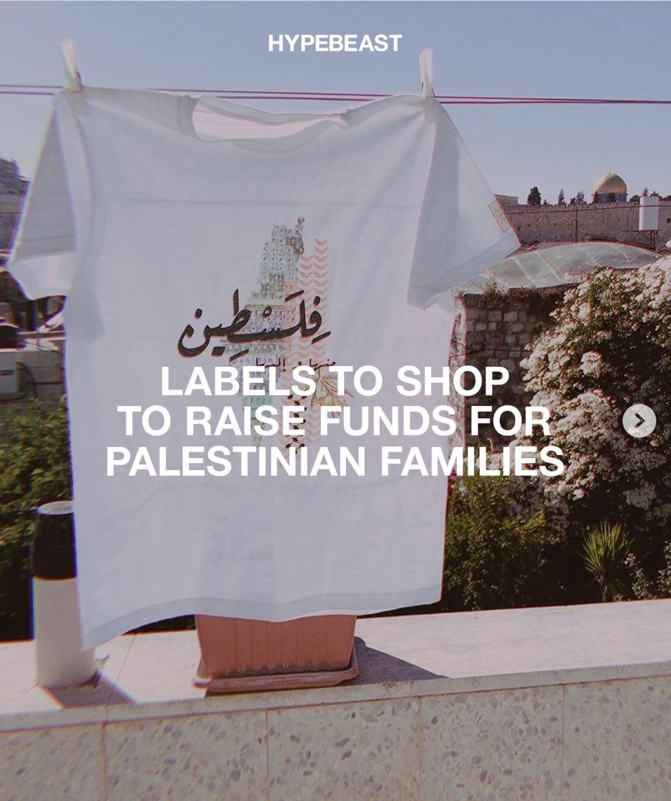"Labels you can shop from to raise funds for Palestinian families. These brands will donate between a portion to 100% of their proceeds to organizations supporting Palestinian families."