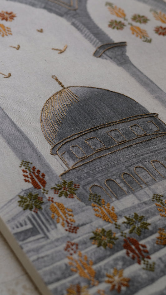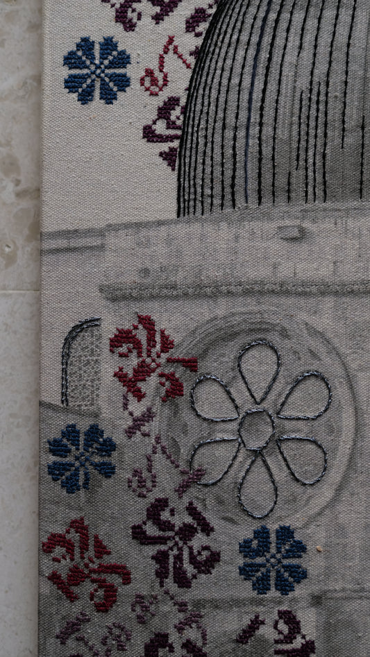 The artworks are made to order and hand stitched, please give a time of 1-3 months to complete and to receive your order (exact timeline depends on how many order are currently pending!). Get in touch for custom orders or special requests. We can customize the photograph, the colours and the tatreez!