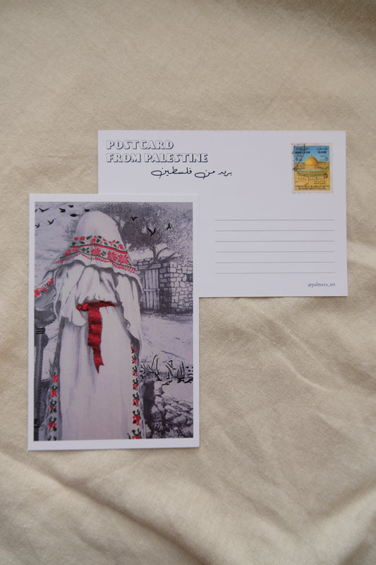 Printed versions of our hand-stitched tatreez artwork made into postcards from Palestine! 350gsm, double sided-print.