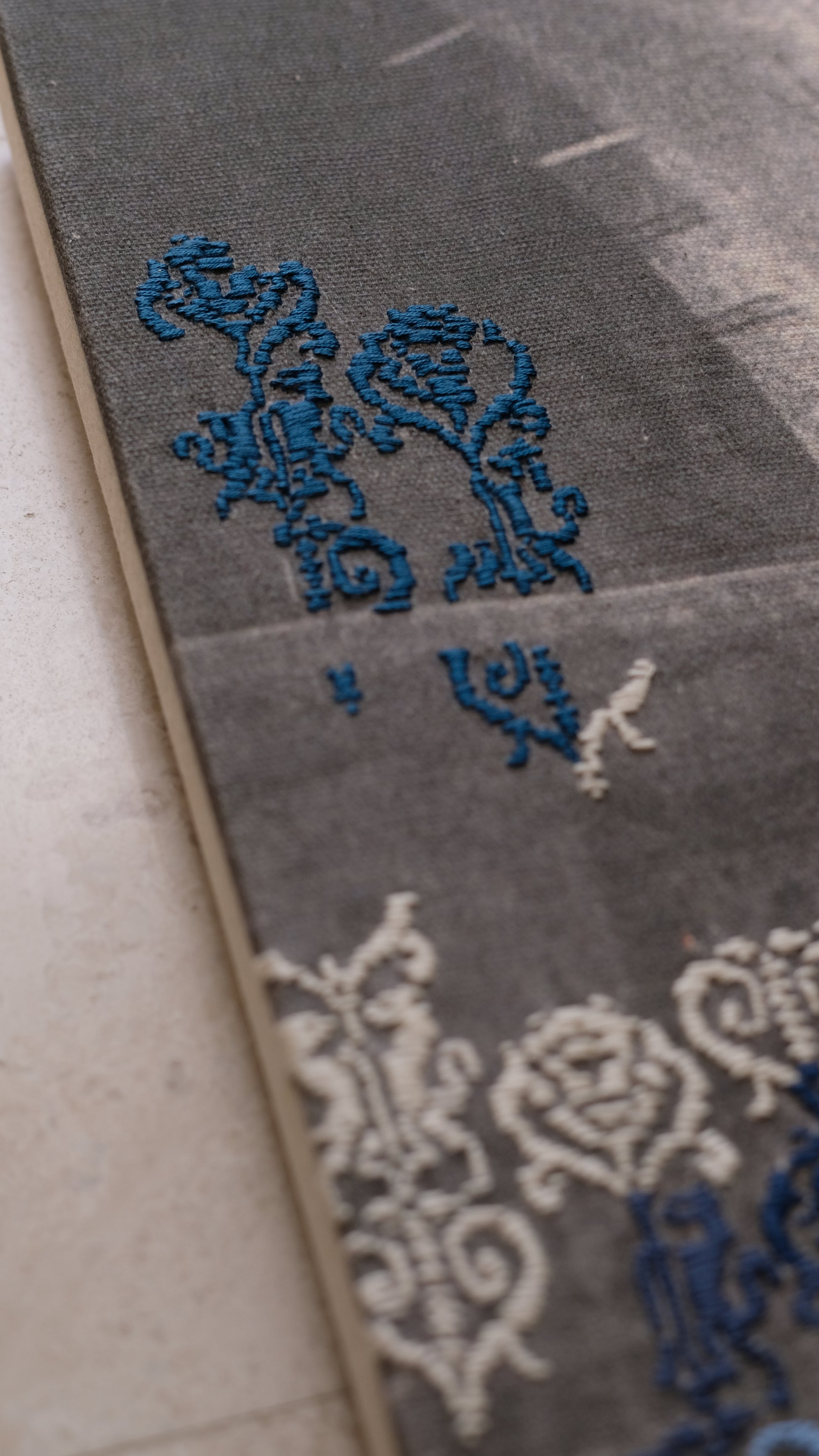 Hand-stitched Palestinian Tatreez (embroidery) on stretched canvas. Our artworks are made to order, please give a time of 1-3 months for the portrait to be completed as they are hand stitched by us.
